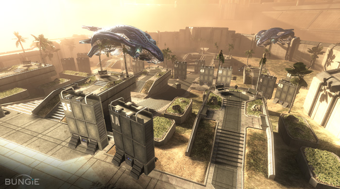 Gamestop If you're looking to plunk down your hard-earned monies early, these are the places where your loyal patronage will earn a token to unlock Sgt. Johnson. Initially I thought this was a great place to make a Johnson joke, but I decided it was too easy. You're welcome. ![]() Explore the SpaceSince we already put a pair of Firefight missions on public display during our E3 outing in La La Land, we figured we might as well give you a better glimpse of what you can expect when you drop into Firefight come September. So, we're going to explore the space right here on Bungie.net. The in game description is a bit light for Security Zone: "Fight in the wide-open ONI exterior." Here's a small pile of pictures and words to help you wrap your mind around this mission a bit more tightly, followed up by a brief Q&A with one of Halo 3: ODST's illustrious designers, a man with a normal-sized head, Lars Bakken. Security Zone![]() Top Down Your base of operations for Security Zone puts you right smack in New Mombasa's Section 2 ONI Alpha Site. If you're familiar with the fiction, you might think that should make it one of the more well-defended sectors of the city. You should also be aware that things did not go so well for the city's defenses when the Covenant's impromptu invasion force touched down and started scouring the city streets, sending the citizens into full-on scatter mode. As a result, you and your squad are going to be on your own beneath the imposing obsidian ONI building. From the initial load out space tucked inside the shadowed confines of a small lobby, you'll probably want to scurry your way up the set of stairs bracketed by palm trees straight away. Once outside under the sulfuric pall, you'll find that you and your squad already occupy the brightly lit high ground. Go you. You'll also notice that several barriers have been dropped into place to help stave off enemy fire. Don't think you can get too comfortable hanging out behind these walls. When they absorb too much damage (which is actually their one and only function in Firefight), they asplode and afford the enemy with a pretty clear view of your position. ![]() Blowupable Cover You'll also find numerous staircases that lead both up to small observation platforms and down the slope to the depressed open area below. Many players might find it valuable to head right up to the platforms at the outset to get a quick look at the Covenant Phantoms drifting in over the encircling wall and waterway. From this vantage, if you happen to be particularly unlucky to kick things off, you'll be able to see said Phantoms deploy a pair of Wraiths into the lower area. The Wraiths will be content to stay in the lower section, shelling you and your squad relentlessly as the more agile forces make their way up the central staircases (or flank around and take the dirt and grass roads less traveled.) How you deal with them is up to you, but each earthen terrace boasts its own unique platforms, barriers, and various other elements that might provide you and your squad with a small spot of cover should you find yourself being shelled with endless volleys of plasma. ![]() In the Shade If you choose to weather the storm and stick to the high ground, you might find that it's a relative safe haven for as long as you are able to keep the ascending Covenant forces at bay with well placed headshots. Once the heavy hitters begin to deploy into the site, what was once a preferred perk can quickly become the perfect place to wind up caught in a well-executed enemy flank. As will all Firefight missions, if you allow your tactical awareness to wane, you might just end up running down the slope, headfirst into a very violent pack of Brutes. Get in the Zone...Bakken Zone!To provide a little bit more situational pregame advice to help you keep your wits about you, we recruited designer Lars Bakken, just back from E3 (and a fabulous vacation in Branson, Missouri) to provide you with some preliminary advice. He also weighed in and told me what to call the barriers I've already described above. I wanted to call them Blast Walls. I thought it sounded kinda futuristic. Lars thought it sounded kinda stupid. Barriers it is. Q. Straight away on Security Zone, players have the high ground and plenty of cover. How did you ensure that Security Zone would still offer up the same level of challenge and intensity as other Firefight missions? A. Well, every map in Firefight plays a little differently. Some are big, like Security Zone, while others are smaller like Crater (Night). The bigger ones are more of a slow burn. It does start a little less intense, but it quickly becomes pretty insane. We are always telling the AI to hunt you down and kill you. This helps out quite a bit, and makes it so you can't just cower in your spawn area and "wait it out". One way we handle the bigger levels is by putting pressure on in different ways that help fill out the lulls in combat. People who were at E3 and played Security Zone will remember the Wraiths that occasionally get dropped off at the bottom of the map. That's a good example of upping the intensity without enemies always being in your face. So, not only do you have to pay attention to that squad of Grunts moving up to your position, but you also have to keep an ear open to possible incoming wraith shells. Q. Security Zone is on a pretty significant slope divided by several outcroppings and stairwells that provide cover and multiple routes as players traverse the environment. How will that affect the way players engage the enemy and move about the mission space? A. Cover is a very important part of the combat cycle in Halo. Security Zone is a great example of lots of good cover in a wide open space. It just makes the encounters that much more interesting, because players and the AI have numerous ways to attack each position. This allows players to flank the enemy in unique ways, but the downside is that the AI will do the exact 