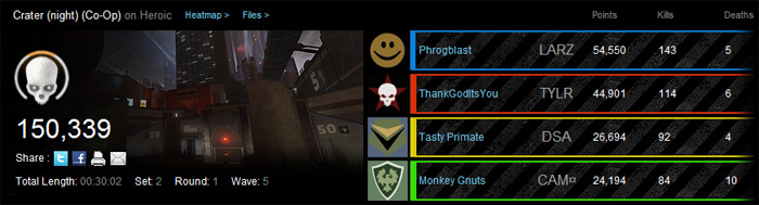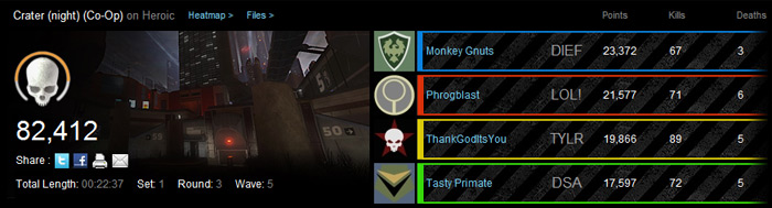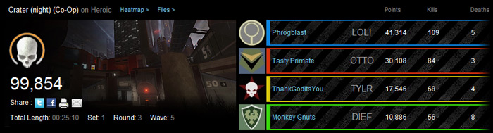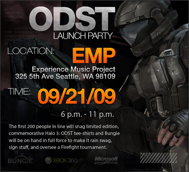 Bungie Weekly Update: 09.18.09Posted by urk at 9/18/2009 3:29 PM PDTKanye West joke goes here. Newborn Internet meme out of the way, let's dig in. Less than four days left until you get your hands on a copy of Halo 3: ODST. Under eighty hours to go. You prepared to drop? ![]() We sure hope so. We've poured it on pretty thick over the last couple of months, providing you with as much information about ODST's campaign and Firefight as we're willing to comfortably part with. You've had ample opportunity to read previews, see tons of screenshots, and get acquainted with plenty of interviews and gameplay videos. The green light is lit. The hangar bay is open. All that's left to do is suit up, strap into your chair, and prepare to drop into New Mombasa. Godspeed and good luck, Seventh Column. We'll see you on the ground early next week. Halo 3: ODST Launch Pajama Jammy JamHey, remember earlier in the week when we told you about this sweet Halo 3: ODST launch party that was going down right here in Seattle? This is your subtle reminder. Nudge, nudge. If you didn't save the details in your calendar, here they are once again: We're going to pack more than a hundred dudes (and a handful of lovely ladies) into some buses and show up at EMP in full Bungie force. If you're gonna be in attendance, look for the dashing lads and lasses rocking the Bungie and ODST tees. Step up and say hello between rounds of Firefight. We're going to have all kinds of festivities to celebrate launch too: a Firefight tournament, 36 Firefight stations, Halo 3: ODST campaign on display, tons of signed swag to give out (some for Child's Play), panels for you to attend, and tons of other stuff to make sure we ring in Halo 3: ODST all proper like. Oh, and please don't really show up in your pajamas. It was just a joke. Jerome will throw you out on your thinly clad ass. Feel free to wear your ODST armor though. There's a costume contest going down. If you can't make it, we're gonna do our best to bring it to the web. If you're not following us on Twitter, you're gonna miss a whole mess of sweet tweets. We're also hoping to get as much guerrilla-style footage canned as we can, same as we did at the PAX panel, so look for some of that coming your way next week. Follow us at Bungie TweetsThe Smell of HeroOne thing we haven't really covered - at least not here in the update - is how you can get the most out of your inaugural run through ODST. First thing first, if you're going in solo, Heroic is still the sweet spot. The enemies will be formidable, the encounters rewarding, and you'll have to rely on tactics and skill to successfully fight your way through to the end. In other words: "To me, Heroic is like a make out session. It's where I start things slow, take my time to explore the nooks and crannies. It lasts longer, and maybe isn't as satisfying as a Legendary run, but it gets me familiar with the game's rhythms and structures, which help me enjoy it more when I take it to the next level. I always head into Legendary on the follow-up play session, as that's where the magic is." - GhaleonEB Legendary, indeed. Going in with a group? Legendary is your best option straight away. You should also keep in mind that it's a bit more difficult to wrangle four players from start to finish, and should you decide at any point to bow out of the group and go it alone your save state begins anew and you'll be forced to drop back in at the start of an already completed mission. You'll probably want to re-read that last sentence, just in case. Personally, I think it's best to experience things at your own pace, solo-style. Disconnect the phone, turn the lights down low, and fire up some potpourri. (I prefer cinnamon spice.) Plus, if you tackle things yourself you won't have to worry about some loudmouth blathering on during a cutscene (let alone skipping one altogether), some chump lagging behind the whole way through, or an overeager showoff blazing a trail and getting too far ahead of the squad. You'll be able to take things nice and slow, hanging on every word, letting the orgiastic feast of sight, sound, and storytelling work its entertainment magic on you in the way that only a video game can. Whichever way you ultimately go, you should pick your difficulty straight away, lock it down, and then stick with it until you complete the game. You should also be playing on an HD set with 5.1 audio if you can swing it. Optimal experience and all that. Lost PlatoonBrad Rigney cooked this up for us. Not going to waste words describing it. It's amazing. Click it to make huge. One Final EffortIf you've made it this far without coming across any significant story spoilers, you're in for a treat. If you haven't, we think you're still in for a ton of fun. If you've pre-ordered your copy of Halo 3: ODST, followed along with us throughout its rather unique and interesting development cycle, or you're just planning on heading down to the local shop at your own leisure to pick up our game when you can, thank you. We say we make games that we want to play, but we're pretty pleased you want to play 'em too. Firefightin' for Braggin' RightsLast week word came down from on high (from Michael Williams) that we needed to gather up some games to give our stats back end one last workout before we pushed it live. (Back end joke goes here) Fortunately for us, that meant playing some more Firefight. Seemed like a good opportunity to run a little impromptu internal tournament. The rules were simple: Four man teams, no warm-ups, on Heroic difficulty. Since Crater (Night) was the only map showing up on the live side (as some of you have already noticed), all the games took place in Dare's darkened crash site. Oh, and there was a thirty minute time limit in place. Here are the four teams and their Firefight breakdowns (click any of the images to make big): Ken Taya, Matt Bennier, Cameron Pinard, and Lars Bakken "I would like to point out that we were the only team that ma