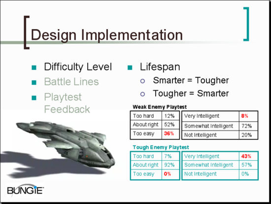- It seems obvious in retrospect, but the tougher you make the enemies the smarter they seem to the player