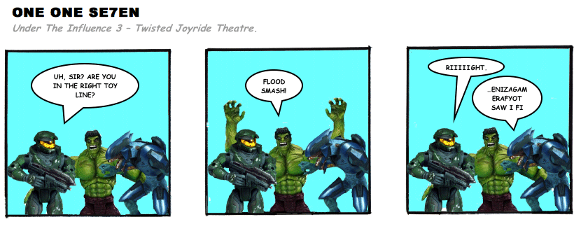 On April 30, 2003, Stuntmutt began turning in episodes of a new comic known as One One Se7en. We'll present them here, in the order in which they were submitted, as they come in. New submissions were added Monday, Wednesday, and Friday. On March 3, 2008, One One Se7en was retired from regular releases - Stunt's life got a tad too busy for 3 strips per week. (He still comes by with new content when the situation arises, however.)