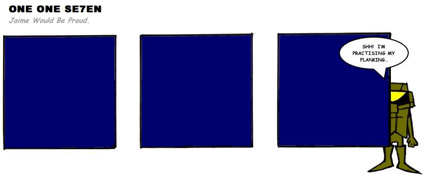 On April 30, 2003, Stuntmutt began turning in episodes of a new comic known as One One Se7en. We'll present them here, in the order in which they were submitted, as they come in. New submissions were added Monday, Wednesday, and Friday. On March 3, 2008, One One Se7en was retired from regular releases - Stunt's life got a tad too busy for 3 strips per week. (He still comes by with new content when the situation arises, however.)