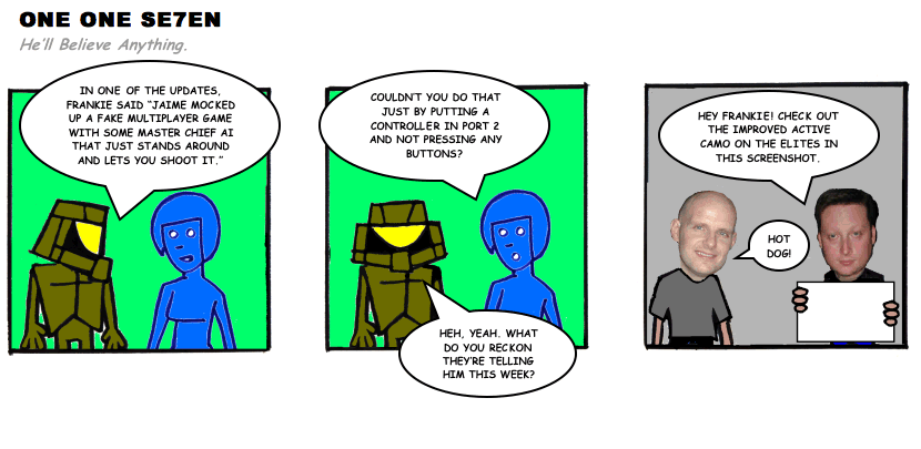 On April 30, 2003, Stuntmutt began turning in episodes of a new comic known as One One Se7en. We'll present them here, in the order in which they were submitted, as they come in. New submissions were added Monday, Wednesday, and Friday. On March 3, 2008, One One Se7en was retired from regular releases - Stunt's life got a tad too busy for 3 strips per week. (He still comes by with new content when the situation arises, however.)