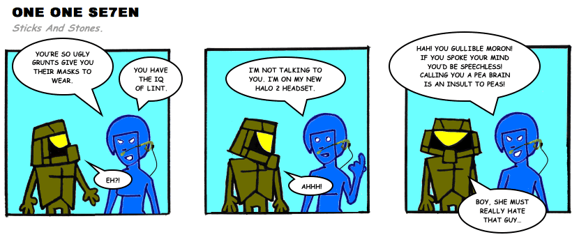 On April 30, 2003, Stuntmutt began turning in episodes of a new comic known as One One Se7en. We'll present them here, in the order in which they were submitted, as they come in. New submissions were added Monday, Wednesday, and Friday. On March 3, 2008, One One Se7en was retired from regular releases - Stunt's life got a tad too busy for 3 strips per week. (He still comes by with new content when the situation arises, however.)
