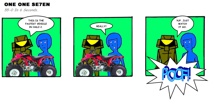 On April 30, 2003, Stuntmutt began turning in episodes of a new comic known as One One Se7en. We'll present them here, in the order in which they were submitted, as they come in. New submissions were added Monday, Wednesday, and Friday. On March 3, 2008, One One Se7en was retired from regular releases - Stunt's life got a tad too busy for 3 strips per week. (He still comes by with new content when the situation arises, however.)