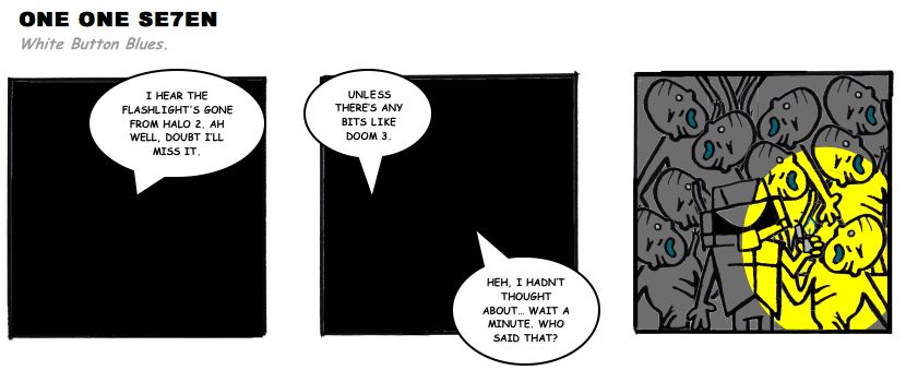On April 30, 2003, Stuntmutt began turning in episodes of a new comic known as One One Se7en. We'll present them here, in the order in which they were submitted, as they come in. New submissions were added Monday, Wednesday, and Friday. On March 3, 2008, One One Se7en was retired from regular releases - Stunt's life got a tad too busy for 3 strips per week. (He still comes by with new content when the situation arises, however.)