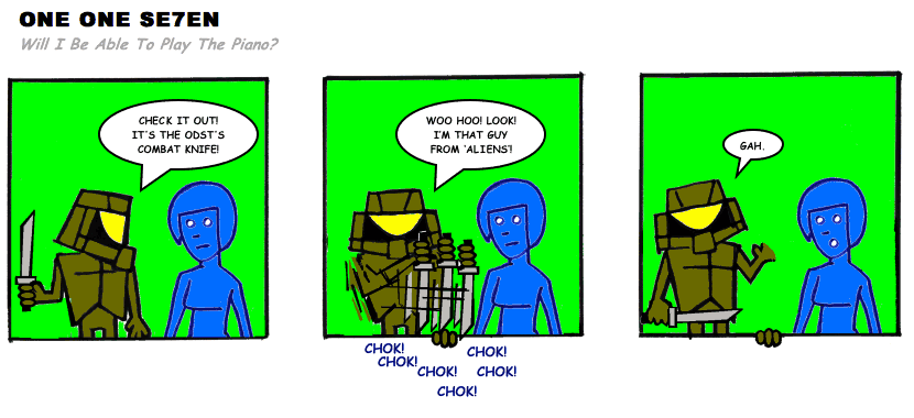 On April 30, 2003, Stuntmutt began turning in episodes of a new comic known as One One Se7en. We'll present them here, in the order in which they were submitted, as they come in. New submissions were added Monday, Wednesday, and Friday. On March 3, 2008, One One Se7en was retired from regular releases - Stunt's life got a tad too busy for 3 strips per week. (He still comes by with new content when the situation arises, however.)