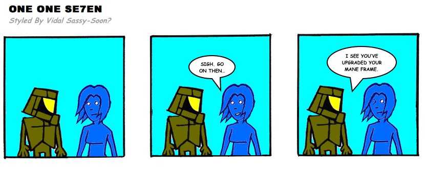 On April 30, 2003, Stuntmutt began turning in episodes of a new comic known as One One Se7en. We'll present them here, in the order in which they were submitted, as they come in. New submissions were added Monday, Wednesday, and Friday. On March 3, 2008, One One Se7en was retired from regular releases - Stunt's life got a tad too busy for 3 strips per week. (He still comes by with new content when the situation arises, however.)