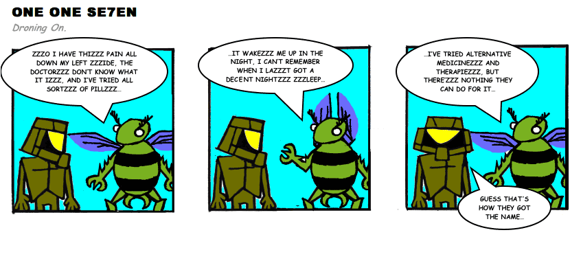 On April 30, 2003, Stuntmutt began turning in episodes of a new comic known as One One Se7en. We'll present them here, in the order in which they were submitted, as they come in. New submissions were added Monday, Wednesday, and Friday. On March 3, 2008, One One Se7en was retired from regular releases - Stunt's life got a tad too busy for 3 strips per week. (He still comes by with new content when the situation arises, however.)