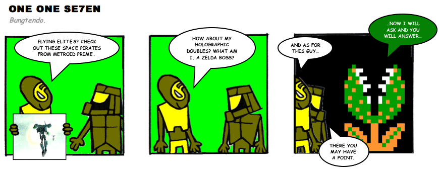 On April 30, 2003, Stuntmutt began turning in episodes of a new comic known as One One Se7en. We'll present them here, in the order in which they were submitted, as they come in. New submissions were added Monday, Wednesday, and Friday. On March 3, 2008, One One Se7en was retired from regular releases - Stunt's life got a tad too busy for 3 strips per week. (He still comes by with new content when the situation arises, however.)