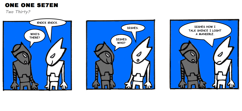 On April 30, 2003, Stuntmutt began turning in episodes of a new comic known as One One Se7en. We'll present them here, in the order in which they were submitted, as they come in. New submissions were added Monday, Wednesday, and Friday. On March 3, 2008, One One Se7en was retired from regular releases - Stunt's life got a tad too busy for 3 strips per week. (He still comes by with new content when the situation arises, however.)