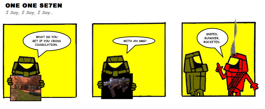 On April 30, 2003, Stuntmutt began turning in episodes of a new comic known as One One Se7en. We'll present them here, in the order in which they were submitted, as they come in. New submissions were added Monday, Wednesday, and Friday. On March 3, 2008, One One Se7en was retired from regular releases - Stunt's life got a tad too busy for 3 strips per week. (He still comes by with new content when the situation arises, however.)