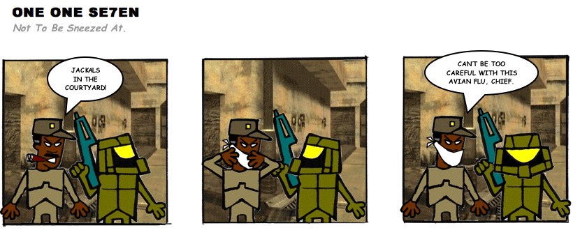 On April 30, 2003, Stuntmutt began turning in episodes of a new comic known as One One Se7en. We'll present them here, in the order in which they were submitted, as they come in. New submissions were added Monday, Wednesday, and Friday. On March 3, 2008, One One Se7en was retired from regular releases - Stunt's life got a tad too busy for 3 strips per week. (He still comes by with new content when the situation arises, however.)
