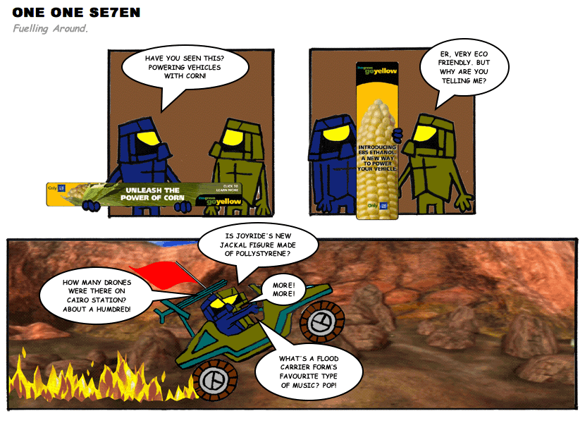 On April 30, 2003, Stuntmutt began turning in episodes of a new comic known as One One Se7en. We'll present them here, in the order in which they were submitted, as they come in. New submissions were added Monday, Wednesday, and Friday. On March 3, 2008, One One Se7en was retired from regular releases - Stunt's life got a tad too busy for 3 strips per week. (He still comes by with new content when the situation arises, however.)