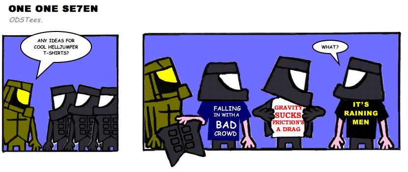 On April 30, 2003, Stuntmutt began turning in episodes of a new comic known as One One Se7en. We'll present them here, in the order in which they were submitted, as they come in. New submissions were added Monday, Wednesday, and Friday. On March 3, 2008, One One Se7en was retired from regular releases - Stunt's life got a tad too busy for 3 strips per week. (He still comes by with new content when the situation arises, however.)
