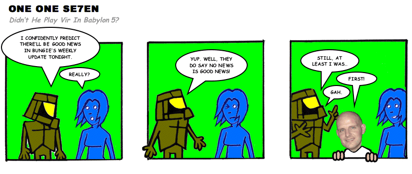 On April 30, 2003, Stuntmutt began turning in episodes of a new comic known as One One Se7en. We'll present them here, in the order in which they were submitted, as they come in. New submissions were added Monday, Wednesday, and Friday. On March 3, 2008, One One Se7en was retired from regular releases - Stunt's life got a tad too busy for 3 strips per week. (He still comes by with new content when the situation arises, however.)