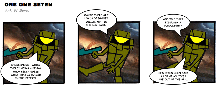 On April 30, 2003, Stuntmutt began turning in episodes of a new comic known as One One Se7en. We'll present them here, in the order in which they were submitted, as they come in. New submissions were added Monday, Wednesday, and Friday. On March 3, 2008, One One Se7en was retired from regular releases - Stunt's life got a tad too busy for 3 strips per week. (He still comes by with new content when the situation arises, however.)