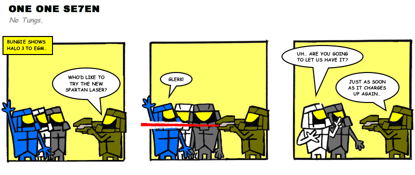On April 30, 2003, Stuntmutt began turning in episodes of a new comic known as One One Se7en. We'll present them here, in the order in which they were submitted, as they come in. New submissions were added Monday, Wednesday, and Friday. On March 3, 2008, One One Se7en was retired from regular releases - Stunt's life got a tad too busy for 3 strips per week. (He still comes by with new content when the situation arises, however.)