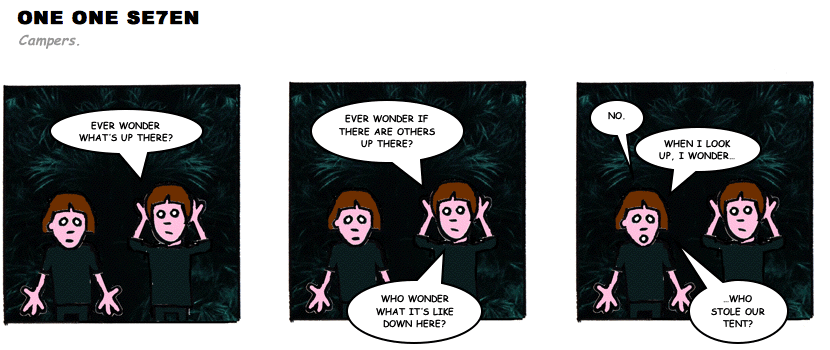 On April 30, 2003, Stuntmutt began turning in episodes of a new comic known as One One Se7en. We'll present them here, in the order in which they were submitted, as they come in. New submissions were added Monday, Wednesday, and Friday. On March 3, 2008, One One Se7en was retired from regular releases - Stunt's life got a tad too busy for 3 strips per week. (He still comes by with new content when the situation arises, however.)