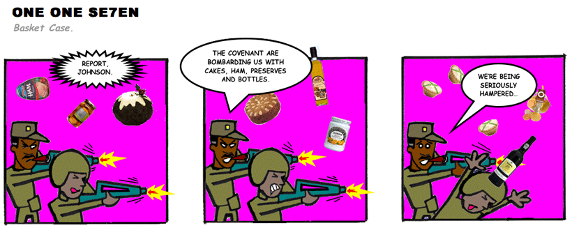 On April 30, 2003, Stuntmutt began turning in episodes of a new comic known as One One Se7en. We'll present them here, in the order in which they were submitted, as they come in. New submissions were added Monday, Wednesday, and Friday. On March 3, 2008, One One Se7en was retired from regular releases - Stunt's life got a tad too busy for 3 strips per week. (He still comes by with new content when the situation arises, however.)