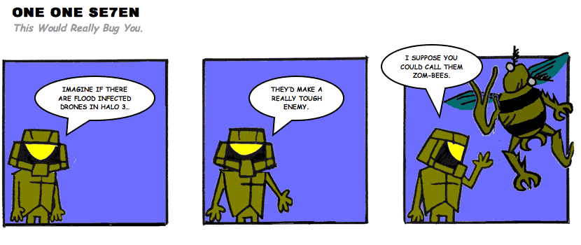 On April 30, 2003, Stuntmutt began turning in episodes of a new comic known as One One Se7en. We'll present them here, in the order in which they were submitted, as they come in. New submissions were added Monday, Wednesday, and Friday. On March 3, 2008, One One Se7en was retired from regular releases - Stunt's life got a tad too busy for 3 strips per week. (He still comes by with new content when the situation arises, however.)