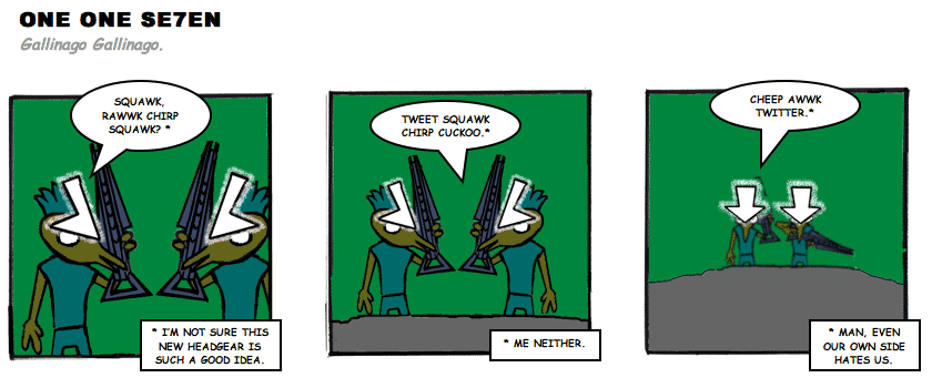 On April 30, 2003, Stuntmutt began turning in episodes of a new comic known as One One Se7en. We'll present them here, in the order in which they were submitted, as they come in. New submissions were added Monday, Wednesday, and Friday. On March 3, 2008, One One Se7en was retired from regular releases - Stunt's life got a tad too busy for 3 strips per week. (He still comes by with new content when the situation arises, however.)