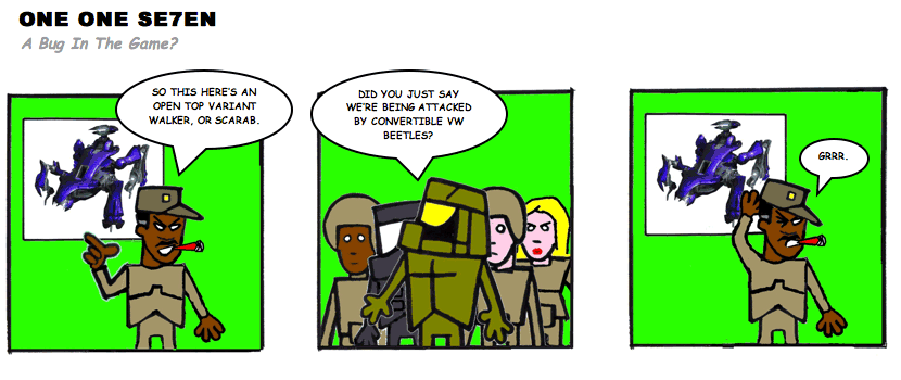 On April 30, 2003, Stuntmutt began turning in episodes of a new comic known as One One Se7en. We'll present them here, in the order in which they were submitted, as they come in. New submissions were added Monday, Wednesday, and Friday. On March 3, 2008, One One Se7en was retired from regular releases - Stunt's life got a tad too busy for 3 strips per week. (He still comes by with new content when the situation arises, however.)