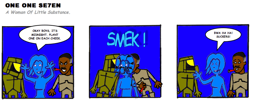 On April 30, 2003, Stuntmutt began turning in episodes of a new comic known as One One Se7en. We'll present them here, in the order in which they were submitted, as they come in. New submissions were added Monday, Wednesday, and Friday. On March 3, 2008, One One Se7en was retired from regular releases - Stunt's life got a tad too busy for 3 strips per week. (He still comes by with new content when the situation arises, however.)