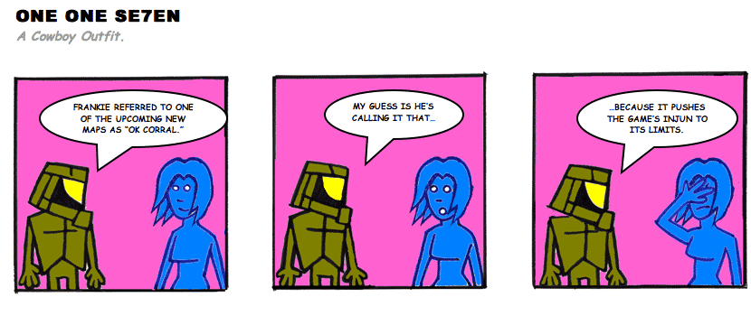 On April 30, 2003, Stuntmutt began turning in episodes of a new comic known as One One Se7en. We'll present them here, in the order in which they were submitted, as they come in. New submissions were added Monday, Wednesday, and Friday. On March 3, 2008, One One Se7en was retired from regular releases - Stunt's life got a tad too busy for 3 strips per week. (He still comes by with new content when the situation arises, however.)