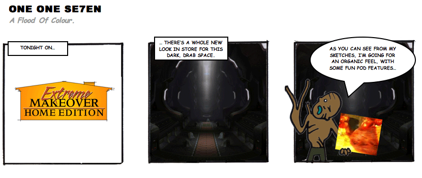 On April 30, 2003, Stuntmutt began turning in episodes of a new comic known as One One Se7en. We'll present them here, in the order in which they were submitted, as they come in. New submissions were added Monday, Wednesday, and Friday. On March 3, 2008, One One Se7en was retired from regular releases - Stunt's life got a tad too busy for 3 strips per week. (He still comes by with new content when the situation arises, however.)