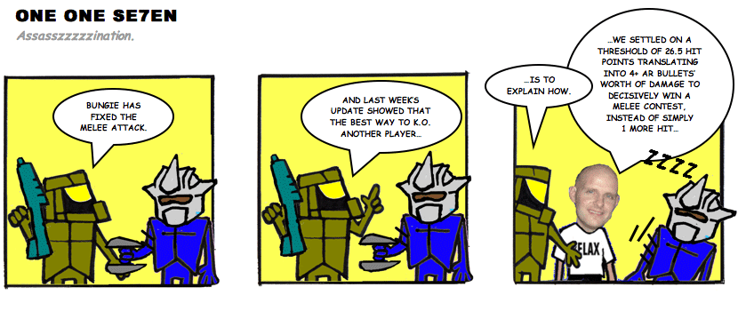 On April 30, 2003, Stuntmutt began turning in episodes of a new comic known as One One Se7en. We'll present them here, in the order in which they were submitted, as they come in. New submissions were added Monday, Wednesday, and Friday. On March 3, 2008, One One Se7en was retired from regular releases - Stunt's life got a tad too busy for 3 strips per week. (He still comes by with new content when the situation arises, however.)